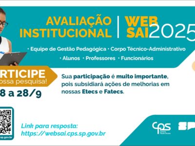 Anualmente, o Centro Paula Souza realiza a Avaliação Institucional, importante momento no qual todos os integrantes de nossa Comunidade Acadêmica, Alunos, Professores e Funcionários, são convidados a participar e opinar sobre diversos aspectos relacionados ao […]