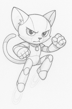 Na disciplina Computação Gráfica em Jogos Digitais I (1º semestre), o Prof. Willians organizou o concurso Challenge 2D, no qual os alunos deveriam criar uma releitura de uma imagem de referência feita a lápis, usando ferramentas digitais de vetorização e técnicas estudadas ao longo das aulas. A imagem de referência foi um herói baseado no mascote da Unidade, o FateCat.